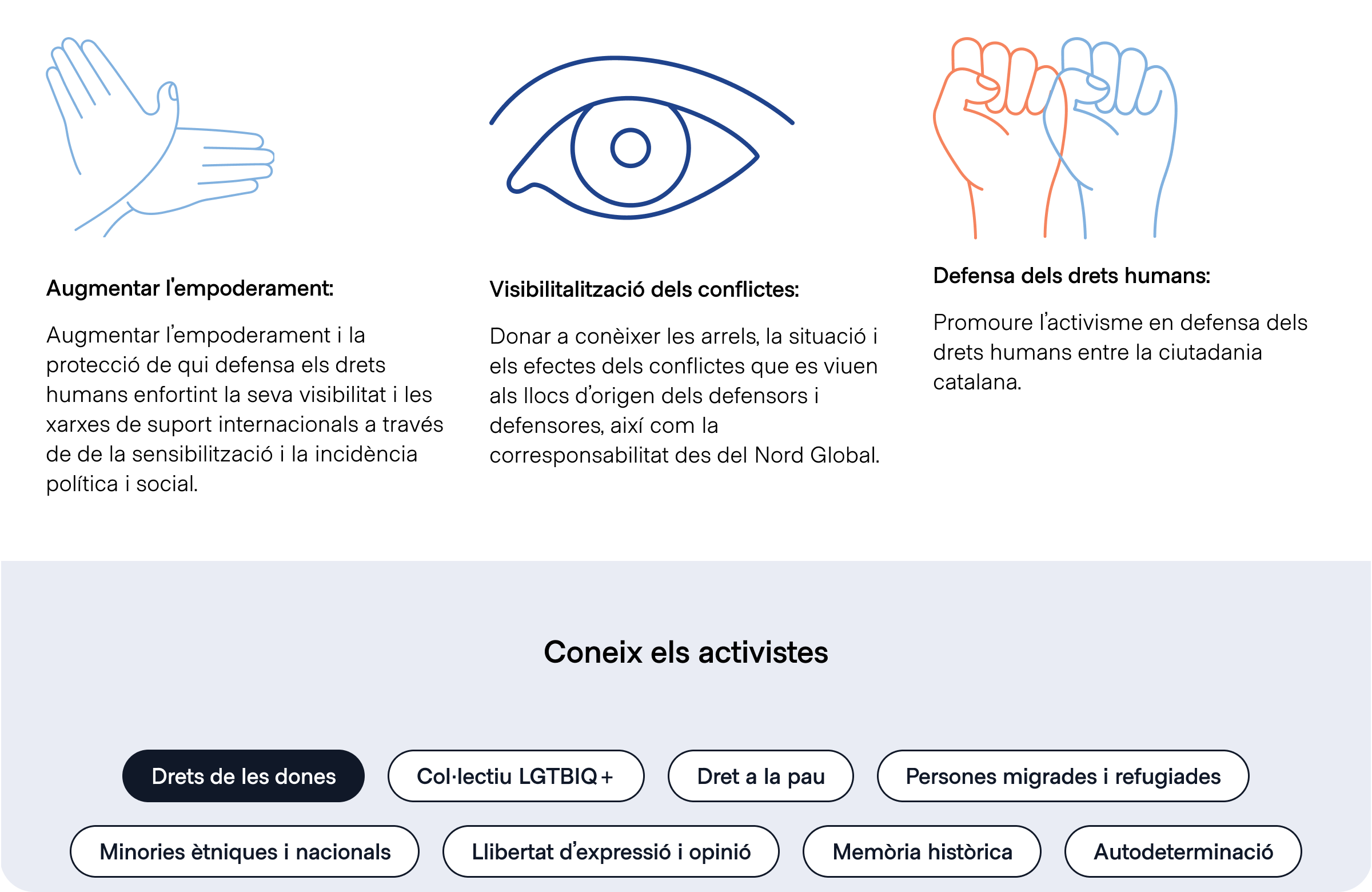 Ciutats Defensores dels Drets Humans es una asociación cuyos objetivos son apoyar a todas las personas que defienden los derechos humanos y educar en la necesidad de denunciar la persecución que sufren sus defensores y defensoras en todo el mundo.